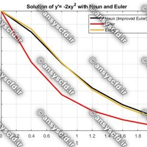 حل عددی معادله دیفرانسیل معمولی(ODE) مرتبه اول با روش هیون(Heun) یا اویلر بهبودیافته و مقایسه با روش اویلر در نرم افزار متلب(MATLAB) 100,000 تومان